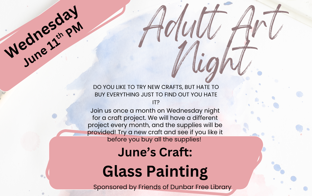 Adult Art-Glass Painting 6:00 pm June 11, 2025 Dunbar Free LibraryRt 401 NH 10 SouthGrantham, New Hampshire 03753United States6038632172Map Dunbar Free Library iCal Google View full calendar